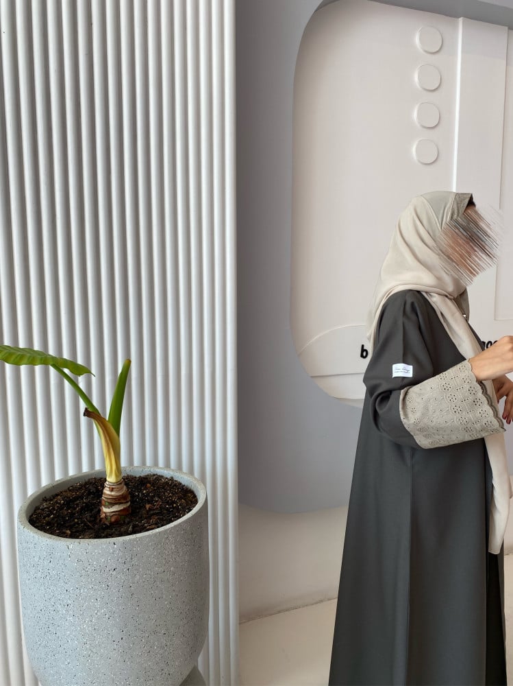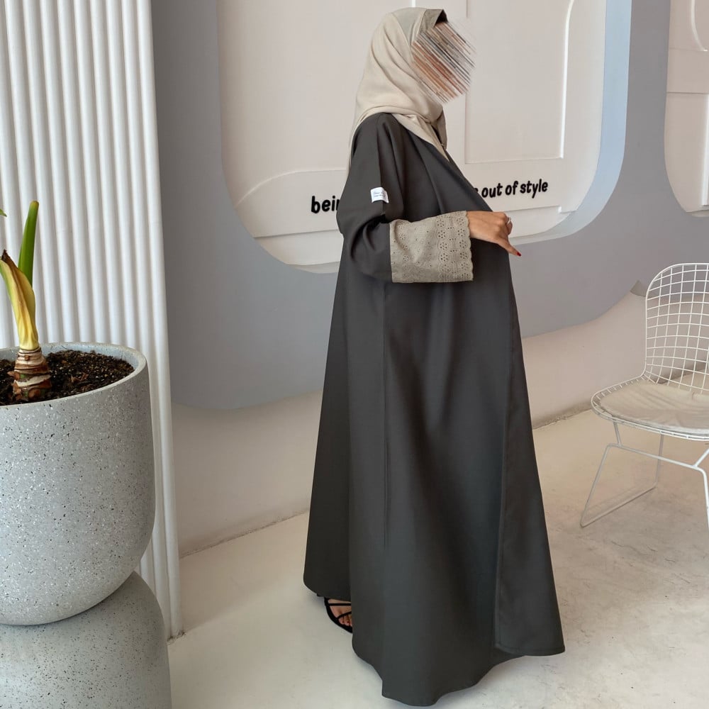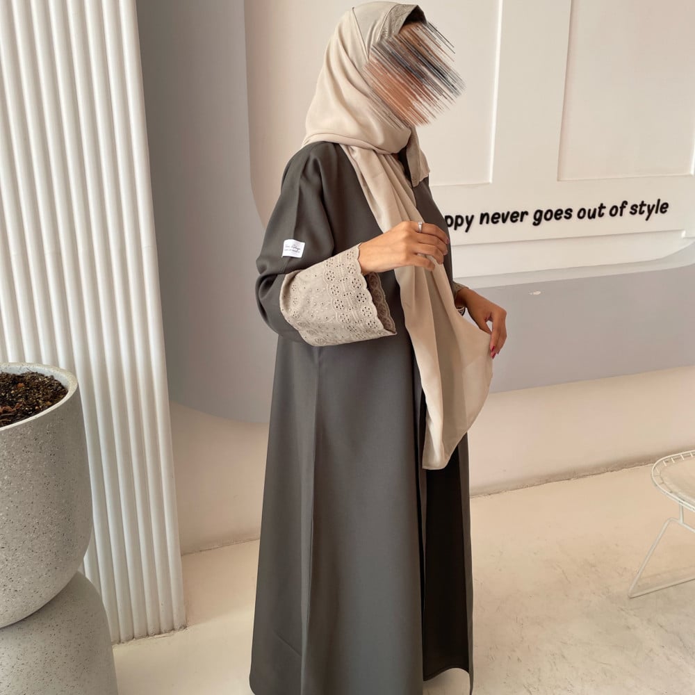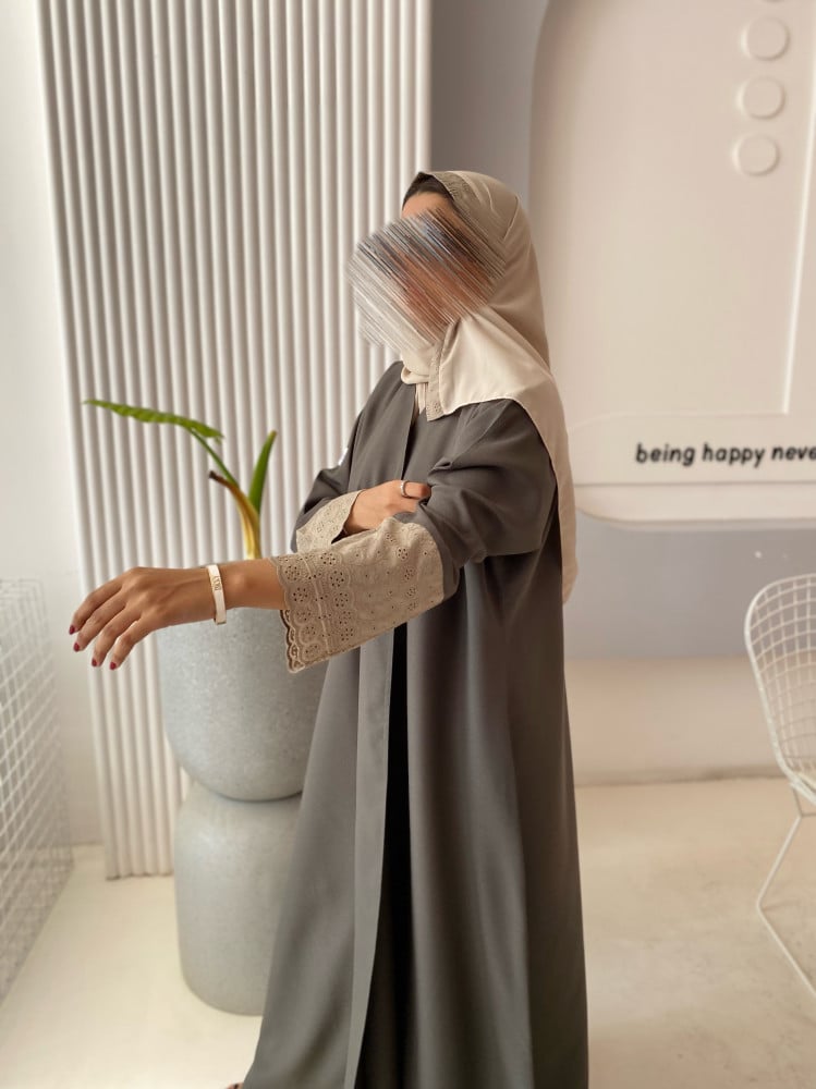 عباية رماديه مزينه بالدانتيل …