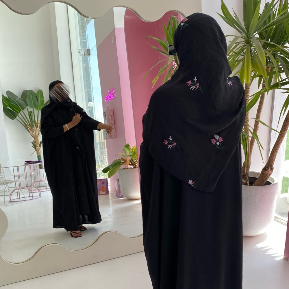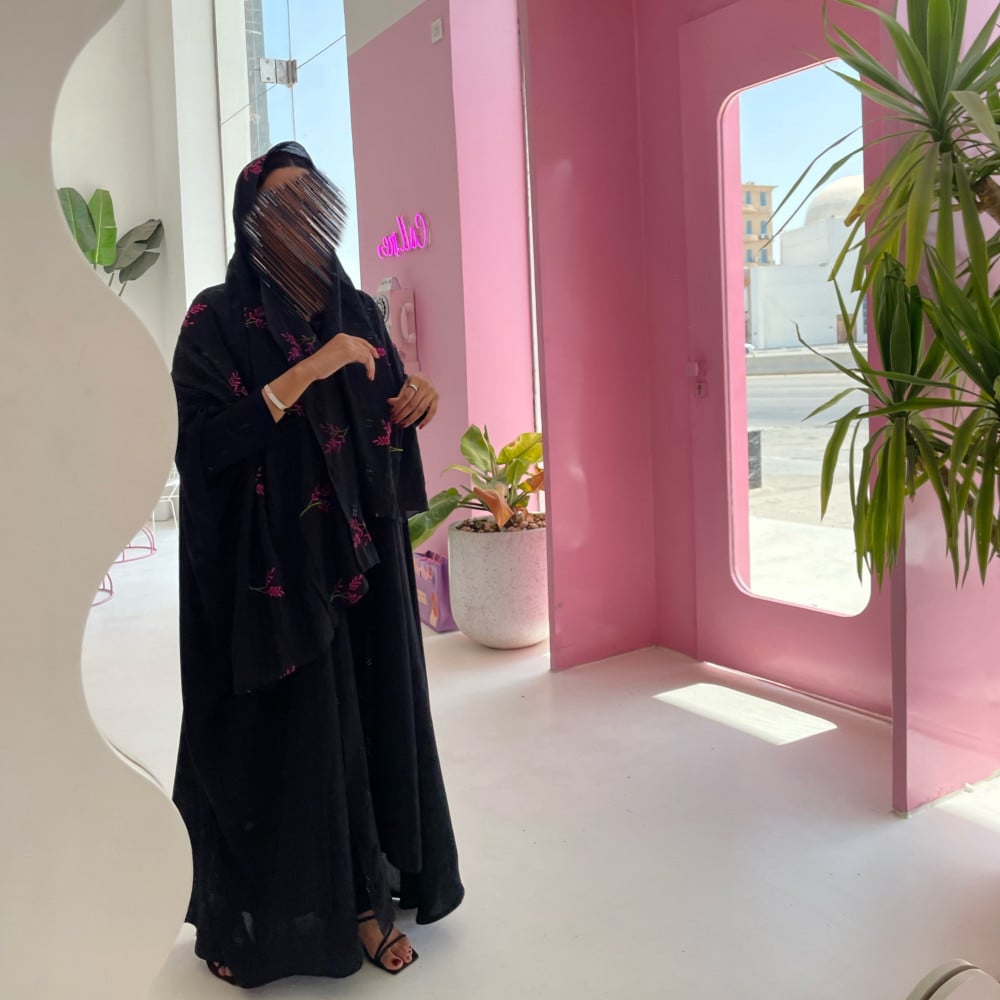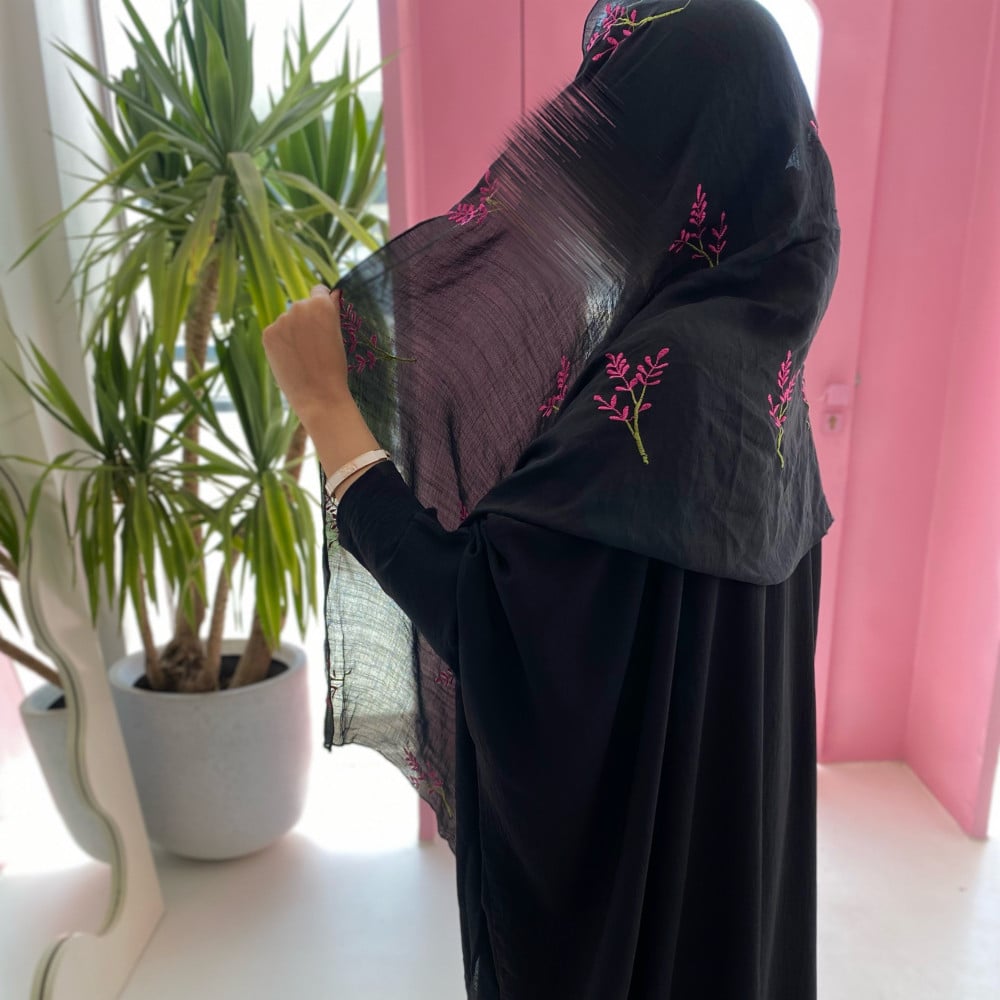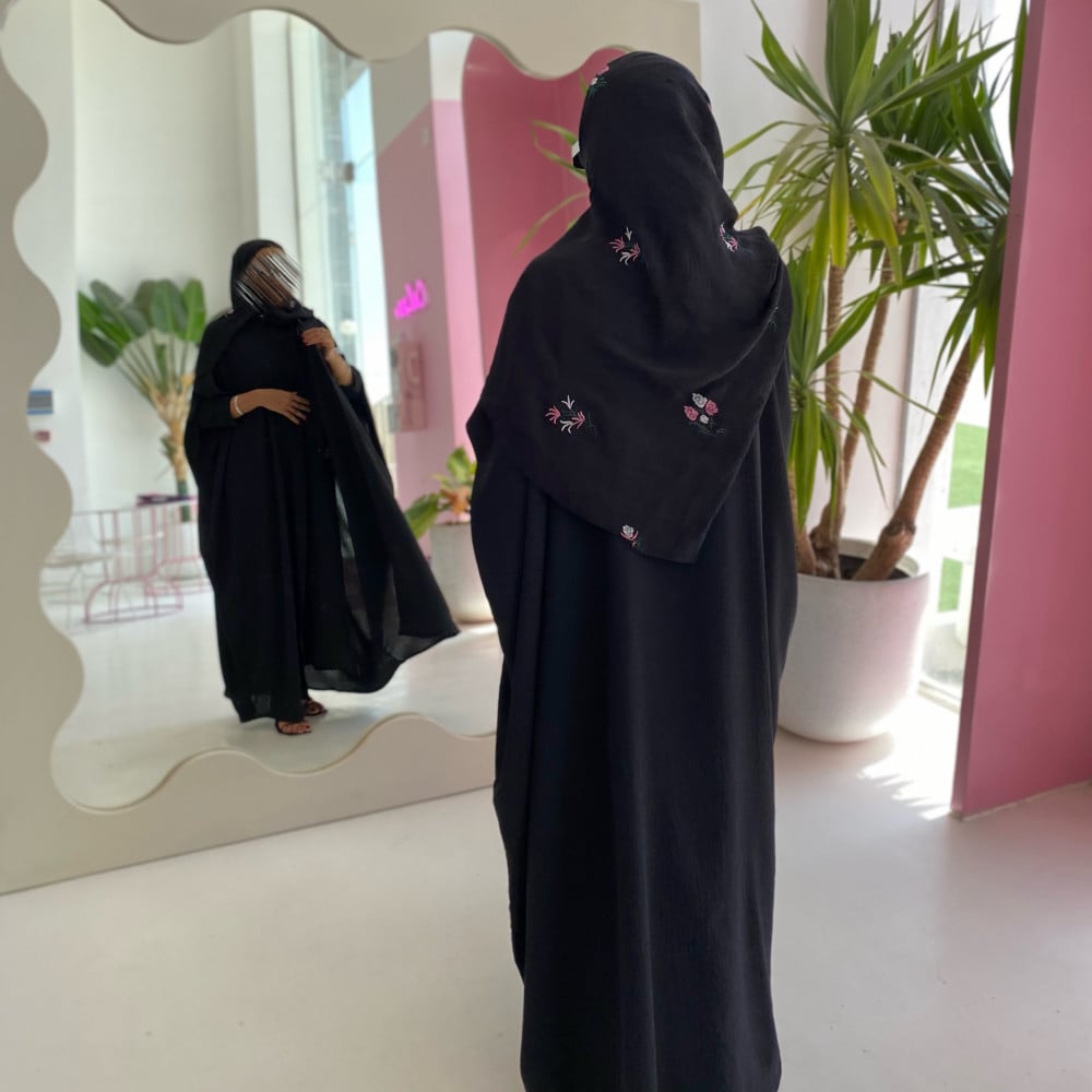 عباية بشت سوداء مع طرحه مطرزه بالورد …