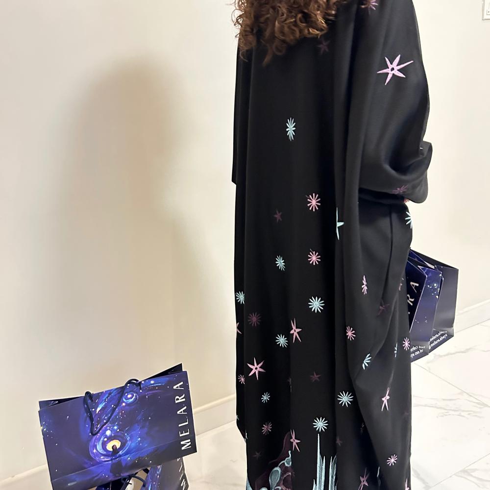 350عباية سوداء نص بشت بقماش كريب لمار مزينه بتطريز وطرحة