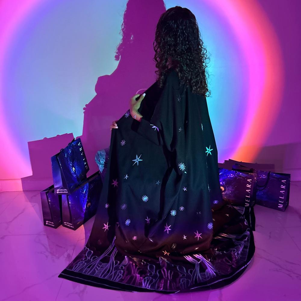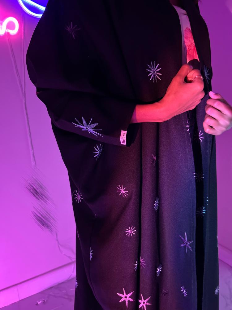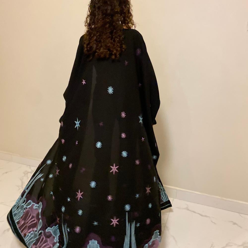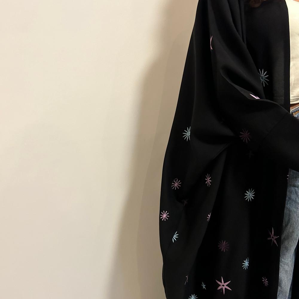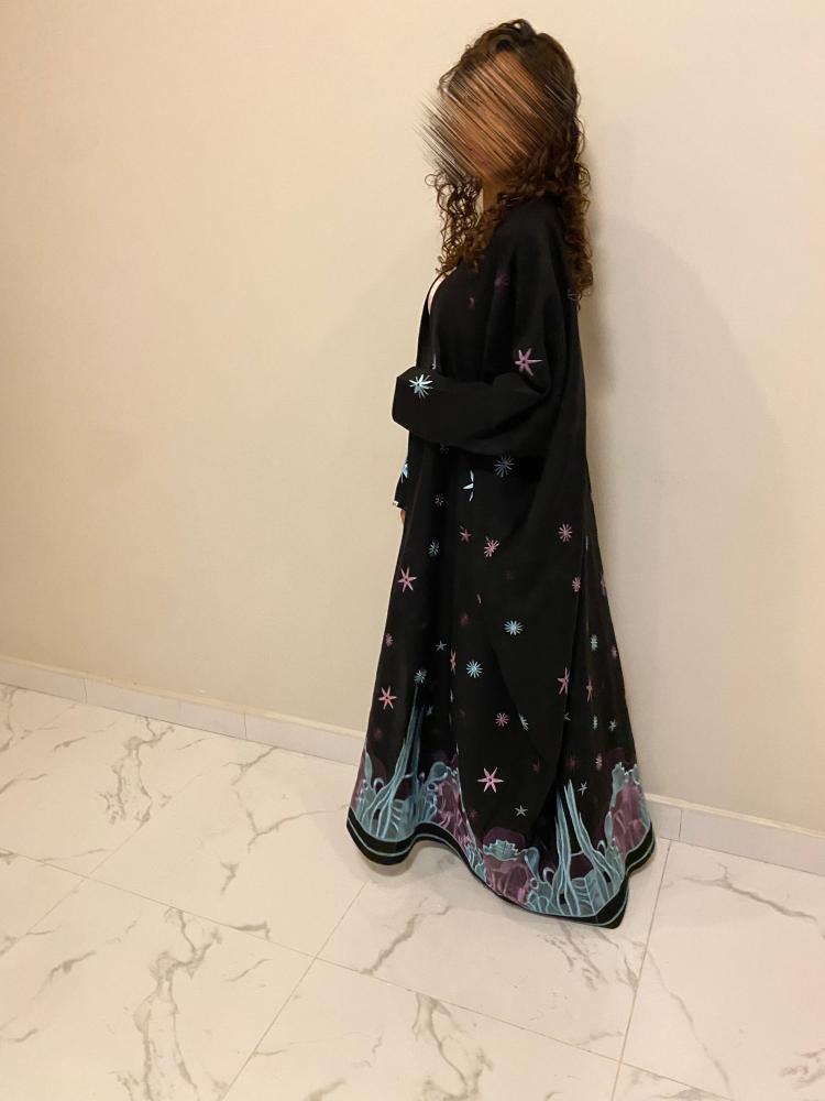 عباية سوداء نص بشت بقماش كريب لمار مزينه بتطريز وطرحة